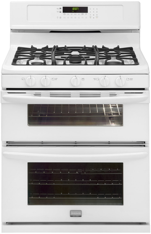 Frigidaire Gallery 30" Free Standing Gas Double Oven Gas Range-White with 5.8 cu. ft. total capacity, 5 sealed burners, even baking technology and delay startRead More